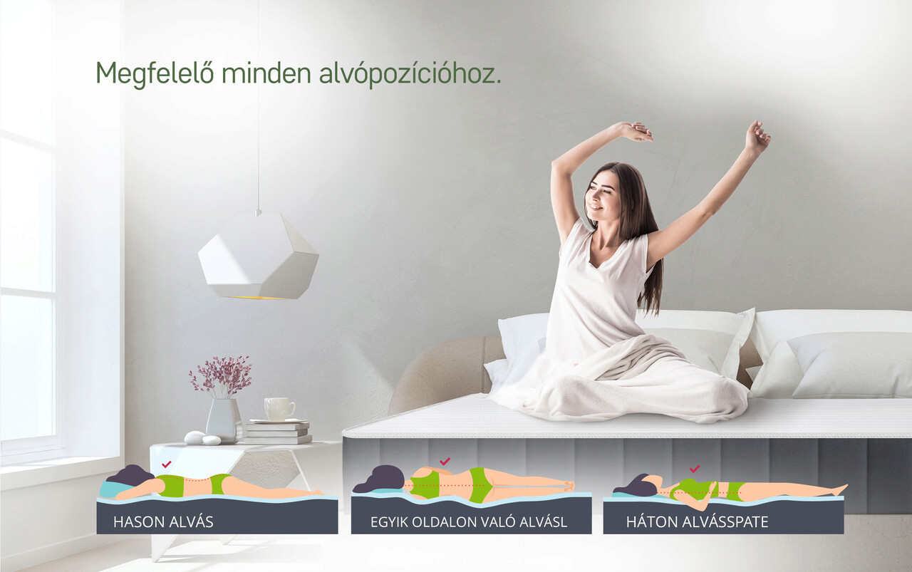 Alkalmas minden alvási pozícióhoz: hát, oldal és has
