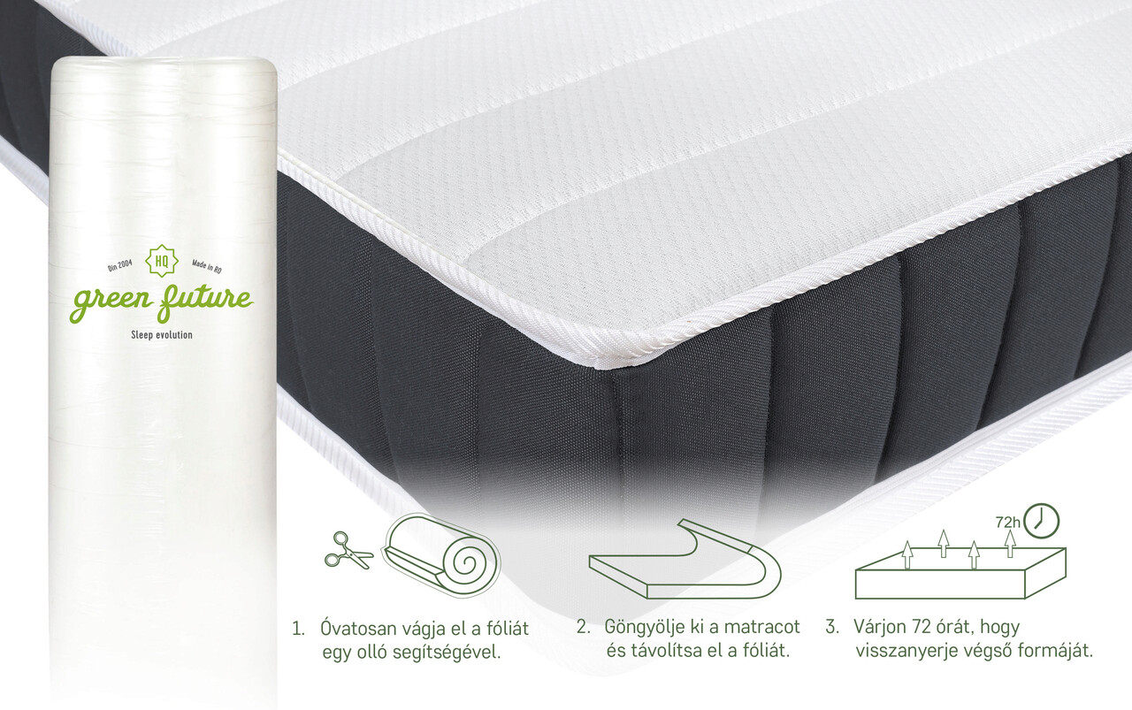 A Green Form HD® nyitott cellás rugalmas habból készült nagyvonalú réteg kiegészíti a FIBER COMFORT® réteget, biztosítva az anatómiai testtartást és a gerinc helyes helyzetét, hátfájás nélkül alvás közben.