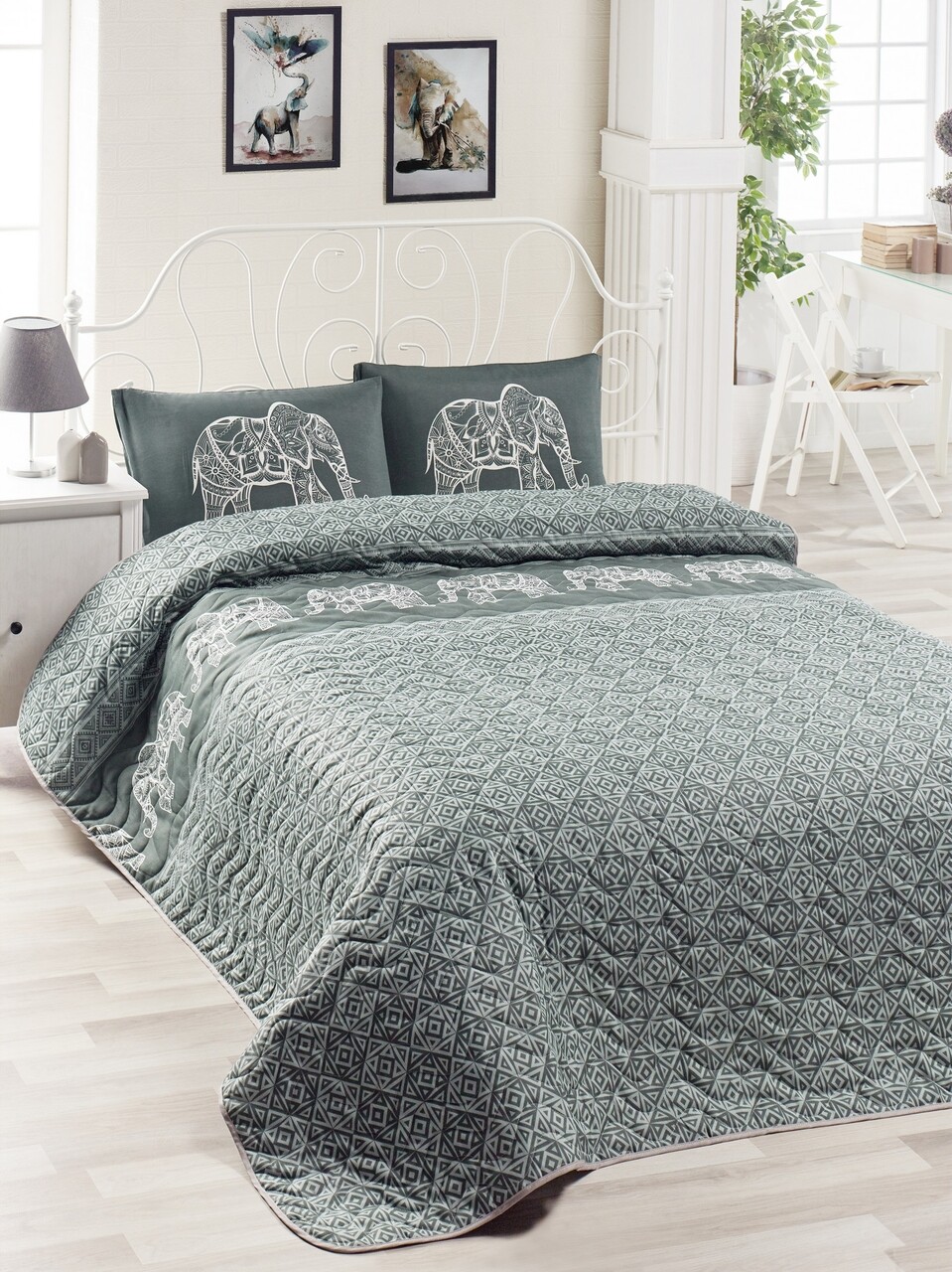 Set cuvertura de pat dubla, EnLora Home, Elepante Anthracite Fume, 3 piese, 65% bumbac, 35% poliester, antracit/alb