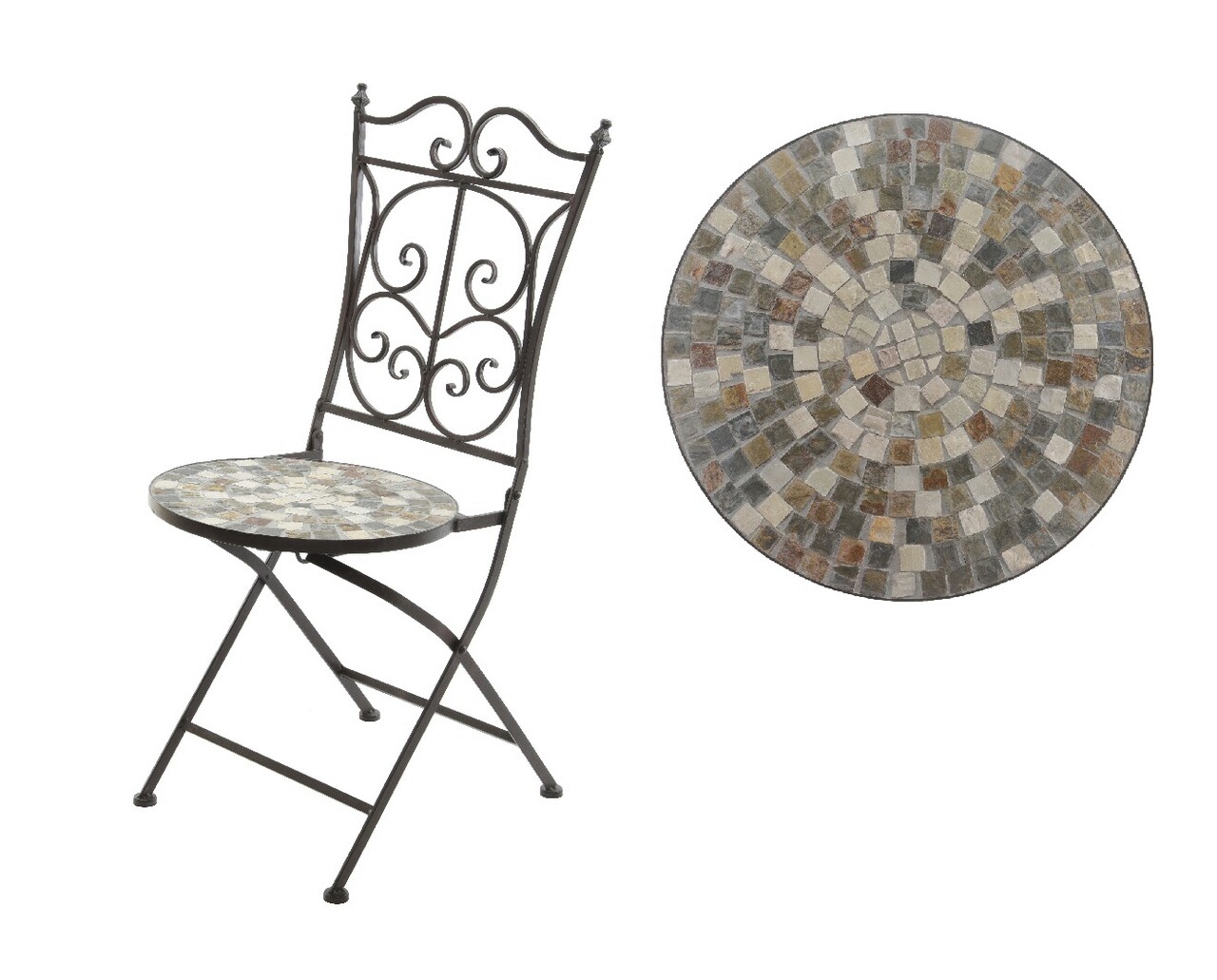 Siena Mosaic Kerti szék, Decoris, 46 x 39 x 92 cm, összecsukható, vas/kerámia, barna