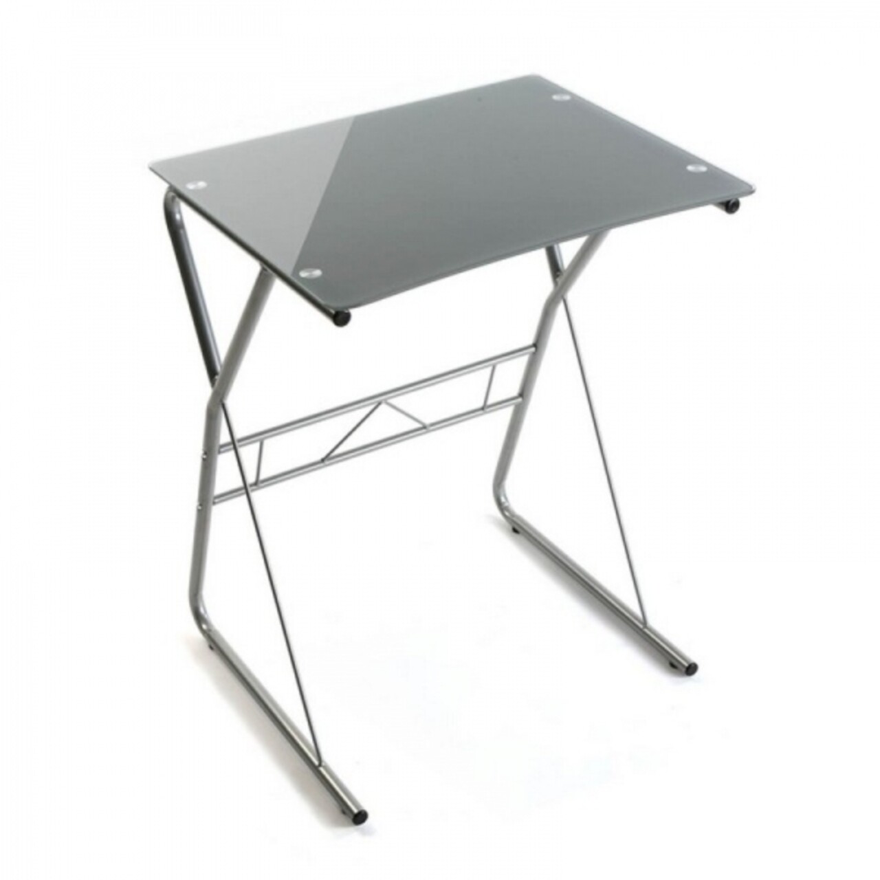 Silver íróasztal, 47.5 x 75 x 60 cm, fém/üveg, szürke