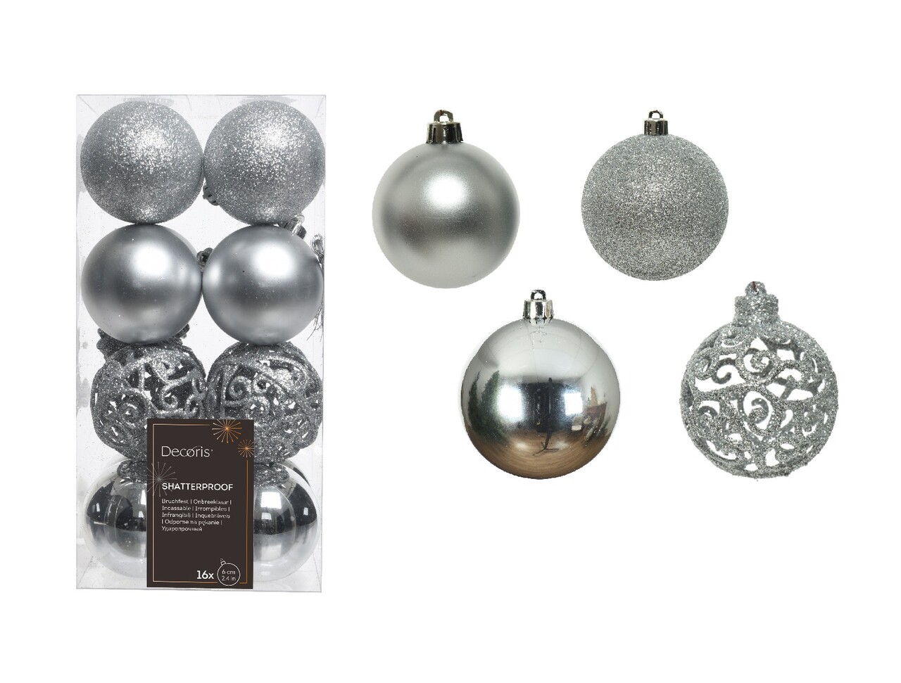 Silver Mix16 db Díszgömb, Decoris, műanyag, ezüstszín