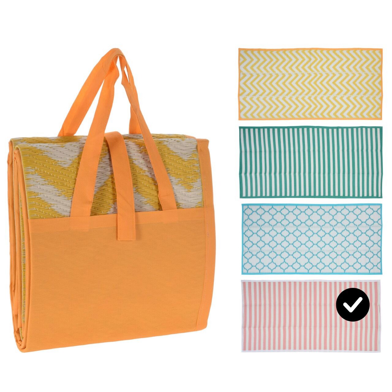 Stripes Piknik takaró, összecsukható, 90x180 cm, polipropilén, rózsaszín