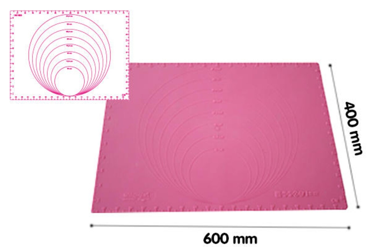A Silikomart tésztalapján domborított körök és oldalméretek vannak megadva centiméterben és hüvelykben. Tökéletes a cukortészta, a tészta vagy az öntőmassza pontos kenésére és darabolására.