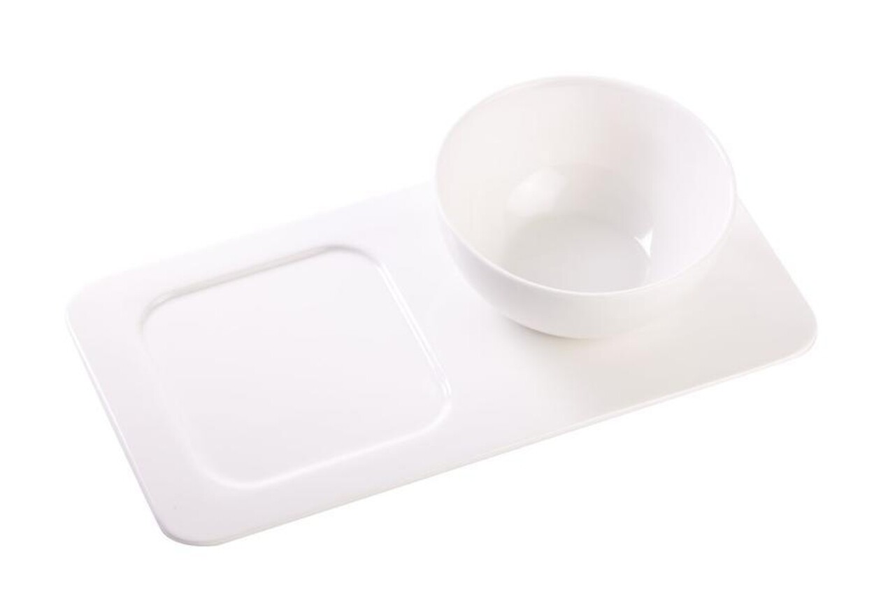 A tálból és tálcából álló készlet kiválóan alkalmas a vendégek étvágygerjesztő harapnivalókkal történő kiszolgálására.
