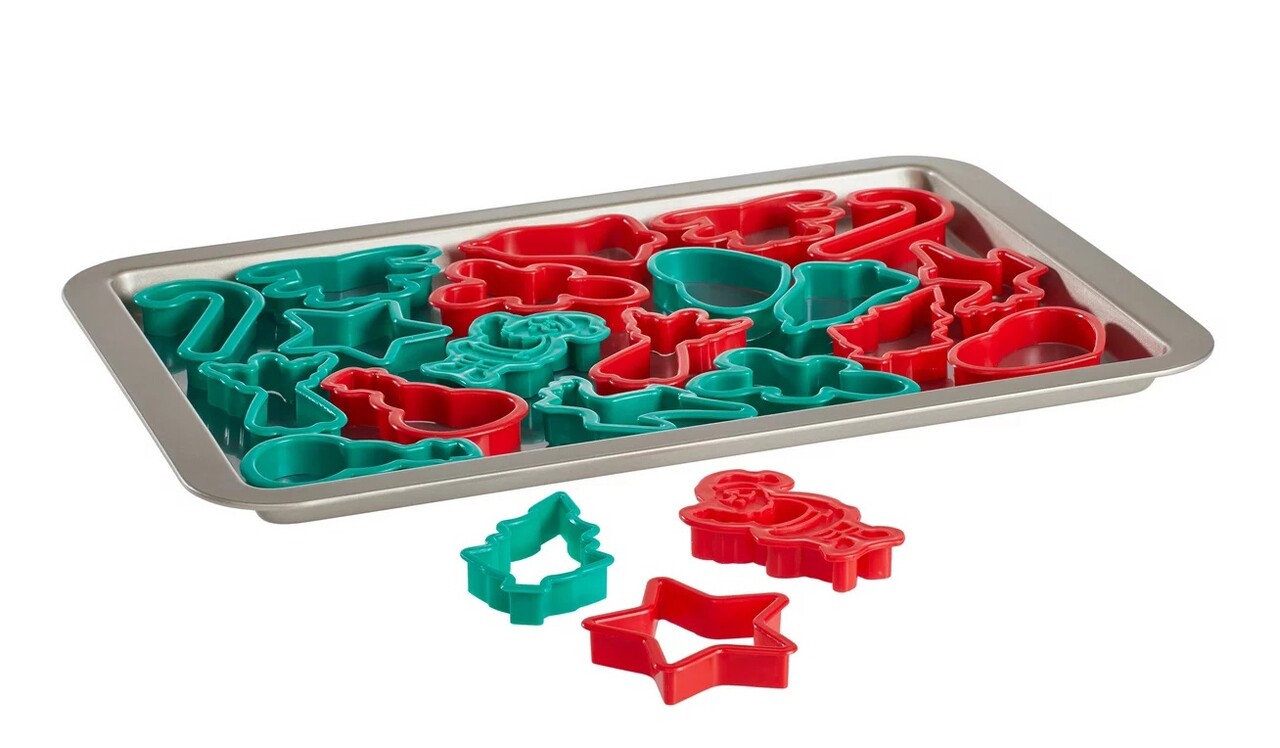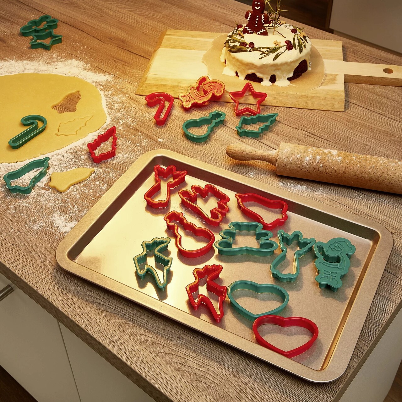 Tálca és formák karácsonyi süteményekhez, 42x29x2 cm, acél