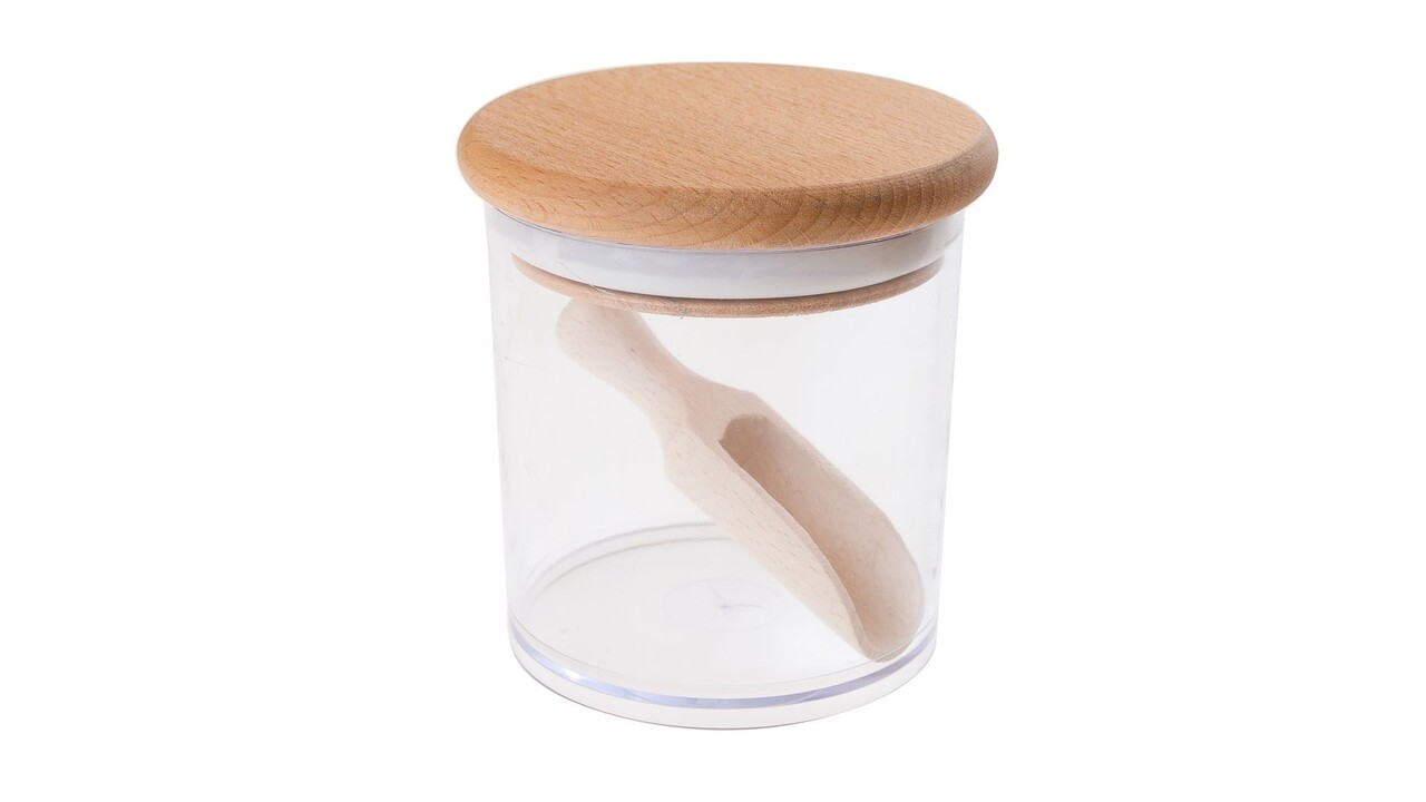 A 250 ml-es edény praktikus és hasznos termék minden konyhában, akár kávét, lisztet, cukrot vagy egyéb fűszereket szeretnél benne tartani. 250 ml-es űrtartalma, és gumigyűrűvel ellátott fa fedővel van lefedve, hogy az ízek bent maradjanak. Az adagoláshoz egy fa teáskanál is található. Méretek: 9x9x10 cm.