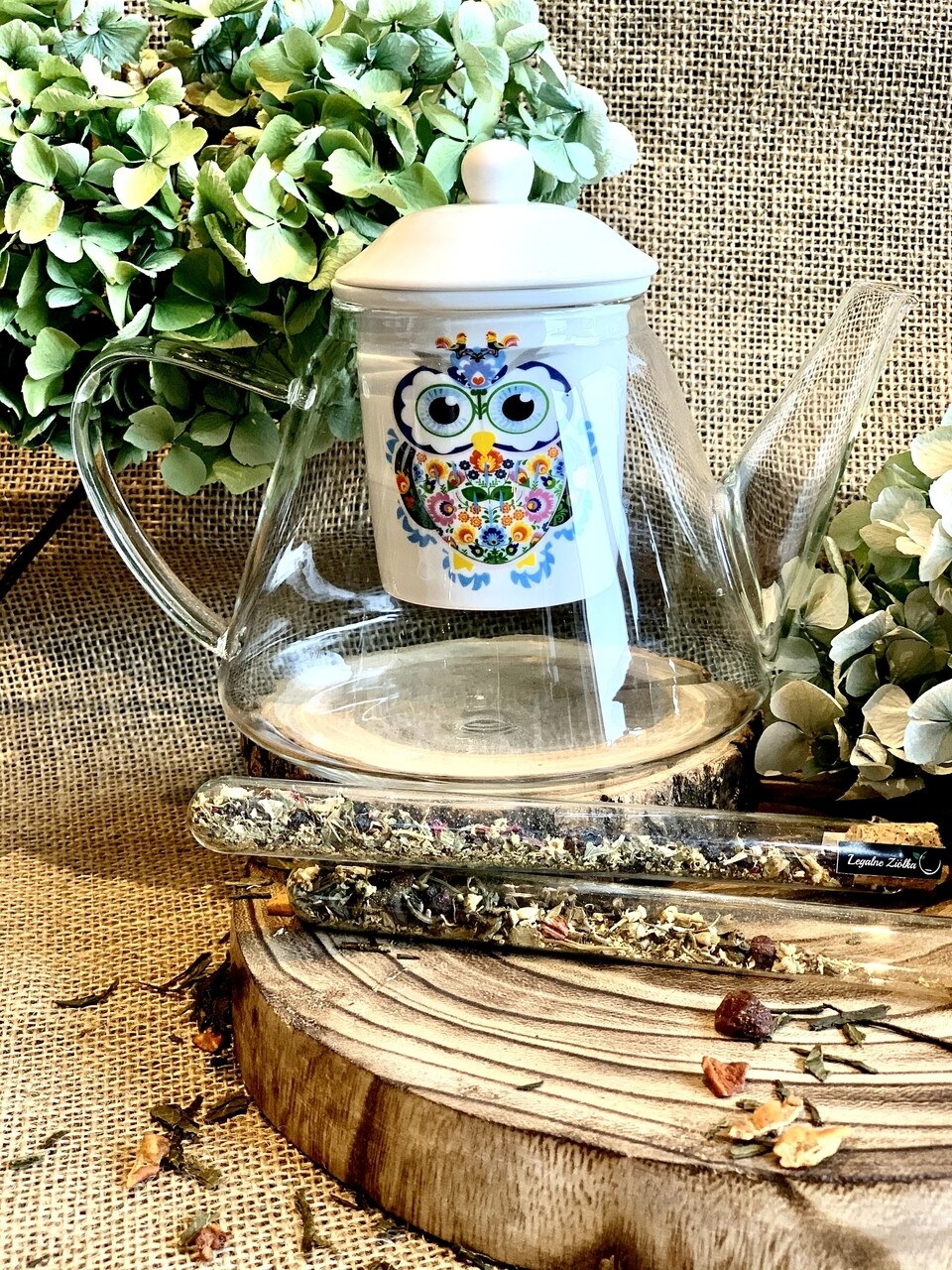 Teáskanna infúzióval, DUO, Owl B, 1200 ml, porcelán / üveg