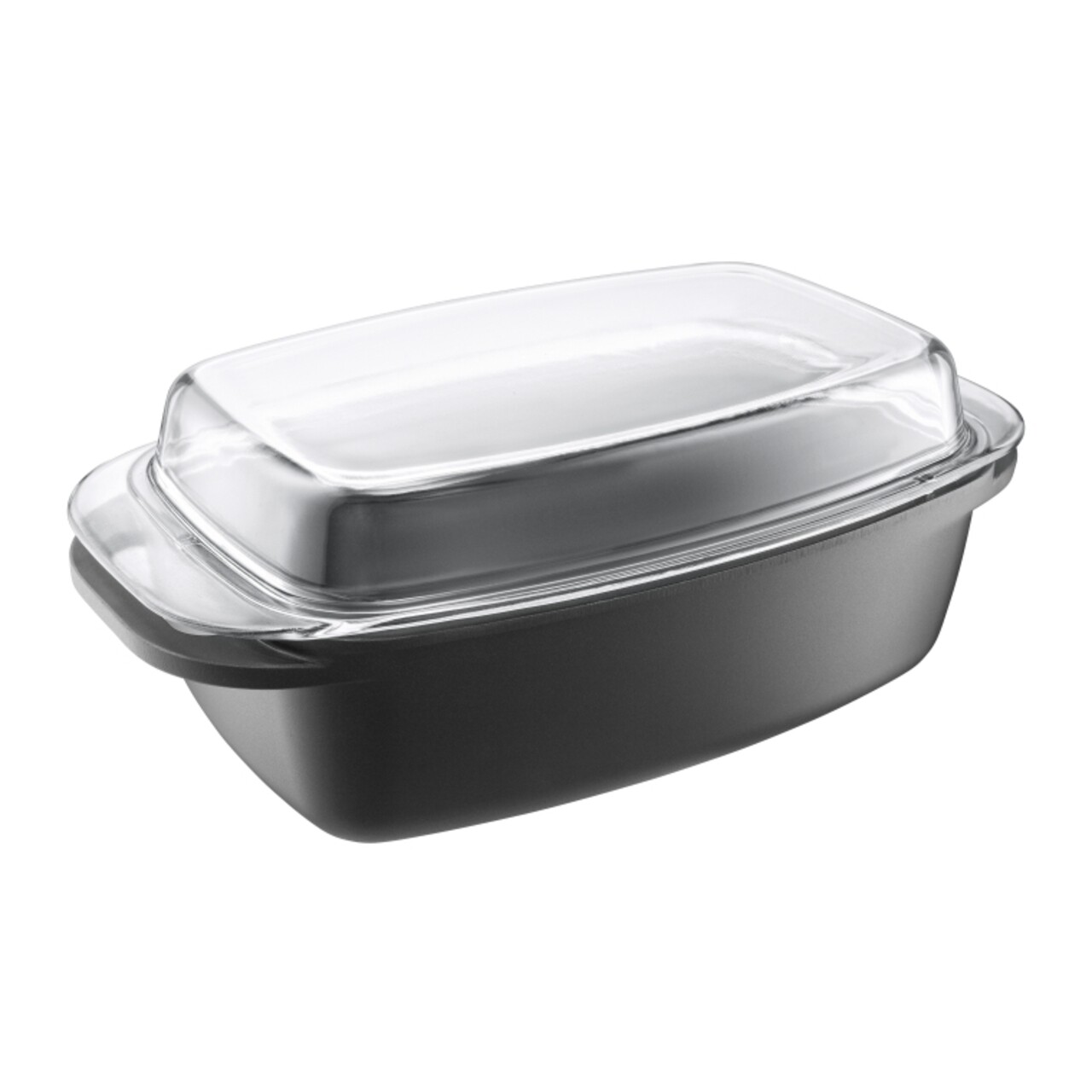 Négyszögletű öntött alumínium edény Teflon Plus bevonattal. Az öntött alumíniumból készült edények kiváló hőátadó tulajdonságokkal rendelkeznek, ami sokkal gyorsabbá és ezáltal gazdaságosabbá teszi a főzést. Az öntött alumínium emellett nagyon tartós és ellenáll a deformációnak. Az edény hőálló üvegtetővel is rendelkezik, és sütőben is használható, akár 240 C fokos hőmérsékletet is kibír. A többrétegű talp lehetővé teszi az edény minden típusú tűzhelyen való használatát, beleértve az indukciós tűzhelyet is. Végül, de nem utolsósorban mosogatógépbe is tehető.