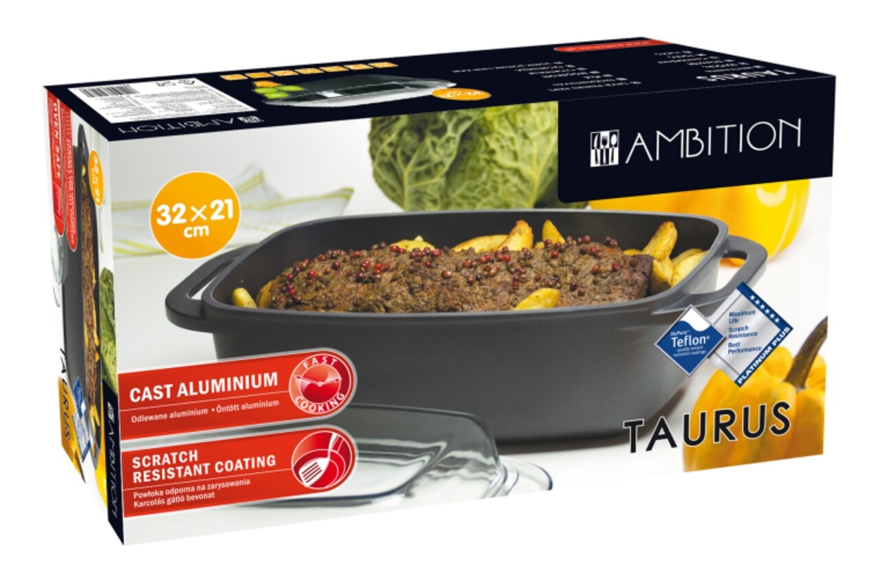 Téglalap alakú edény Teflon Plus Taurus házzal, Ambition, 39,5x23 cm, öntött alumínium