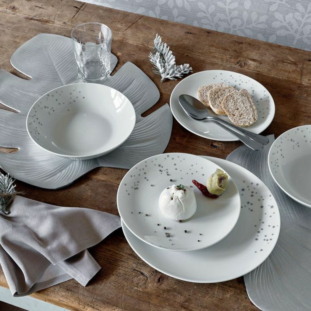 Tognana 18 darabos Étkészlet, Metropolis Dream Argento, portelan, fehér/ezüstszín