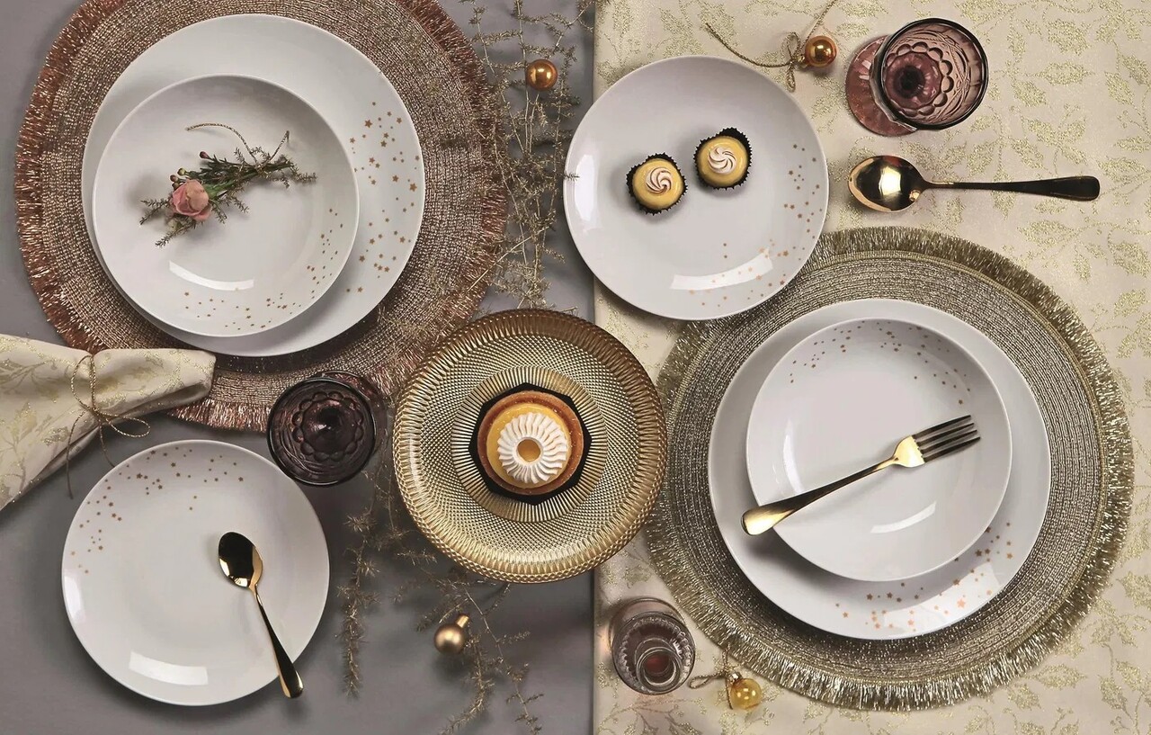 Tognana 18 darabos Étkészlet, Metropolis Dream Oro, porcelán, fehér/aranyszín