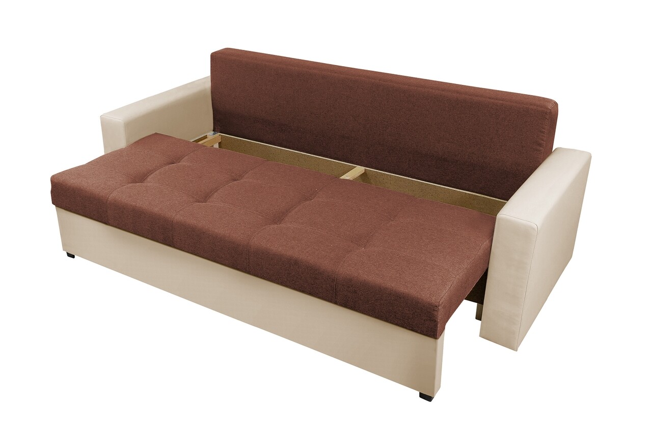 Toledo Kihúzható Kanapé, 226x90x86 cm, tárolóláda, krémszín/barna