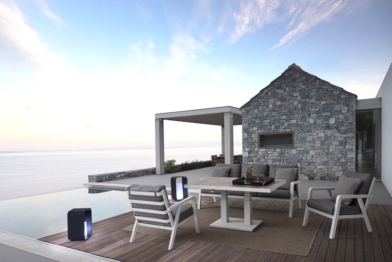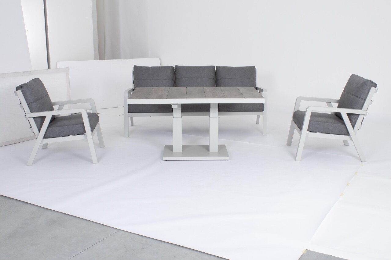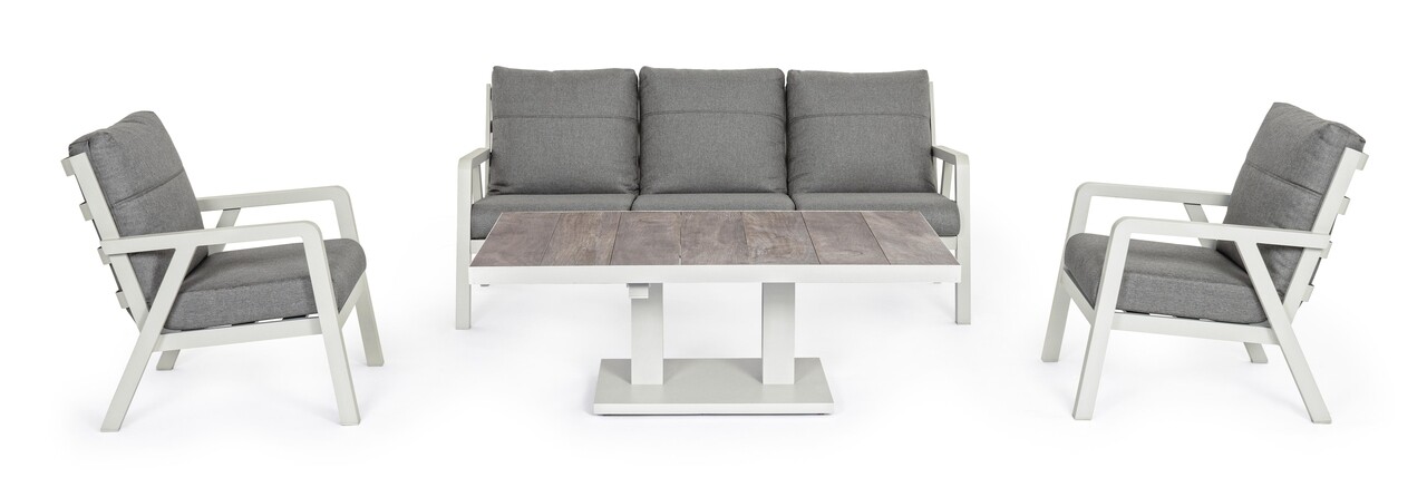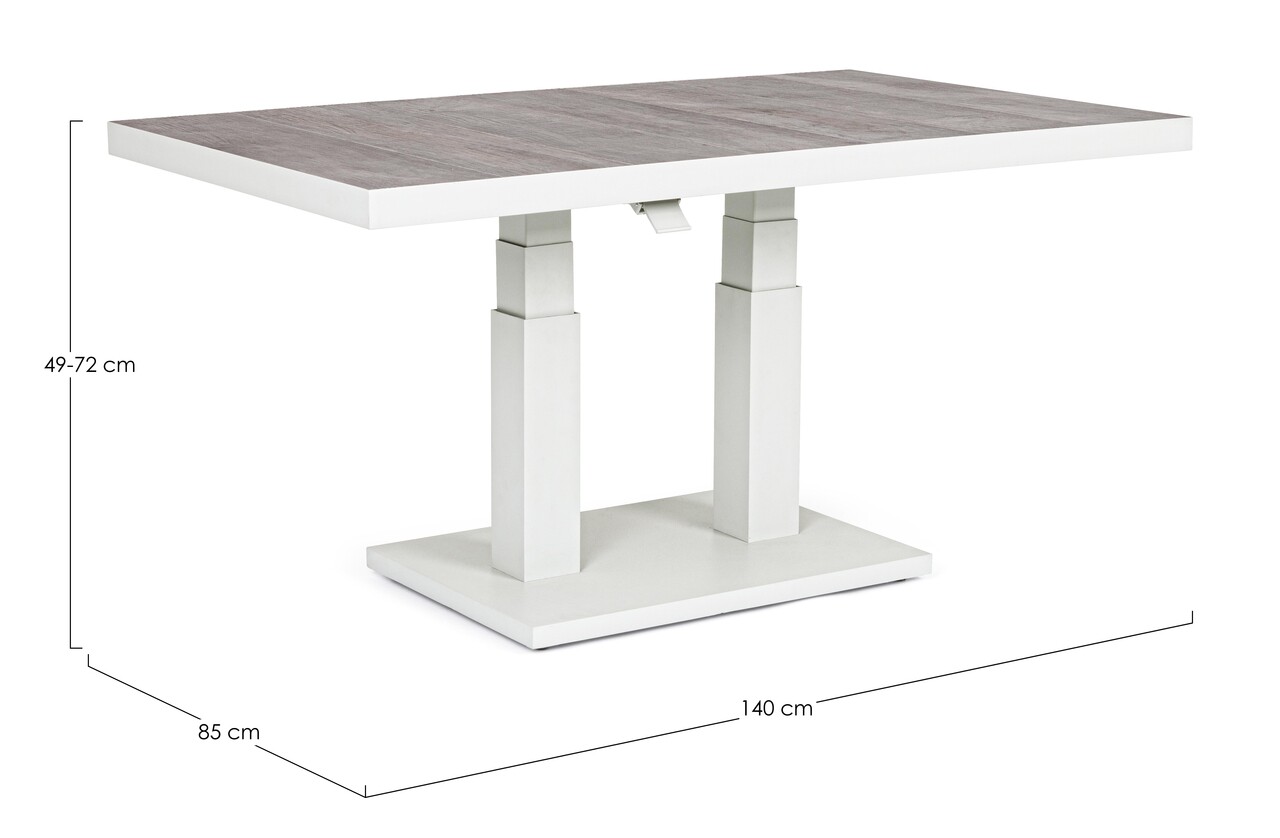Truman Kerti állítható asztal, Bizzotto, 140 x 82 x 49-72 cm, alumínium, kerámia asztallap, szürke