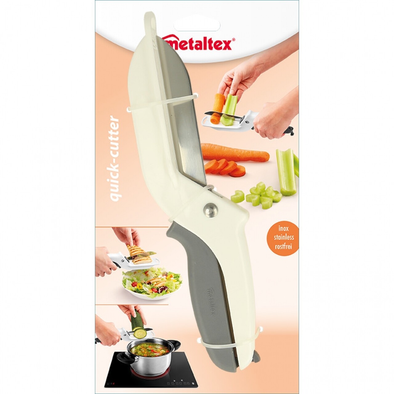 Remek eszköz, könnyen használható és megmenti Önt attól, hogy aggódjon az ételek szeletelésével kapcsolatban. A termék aljára írt méretek miatt az élelmiszerek adagolása sokkal pontosabb és gyorsabb. Könnyen használható, a multifunkcionális olló pontosan szeleteli a húst, zöldségeket, gyümölcsöket és sajtokat.