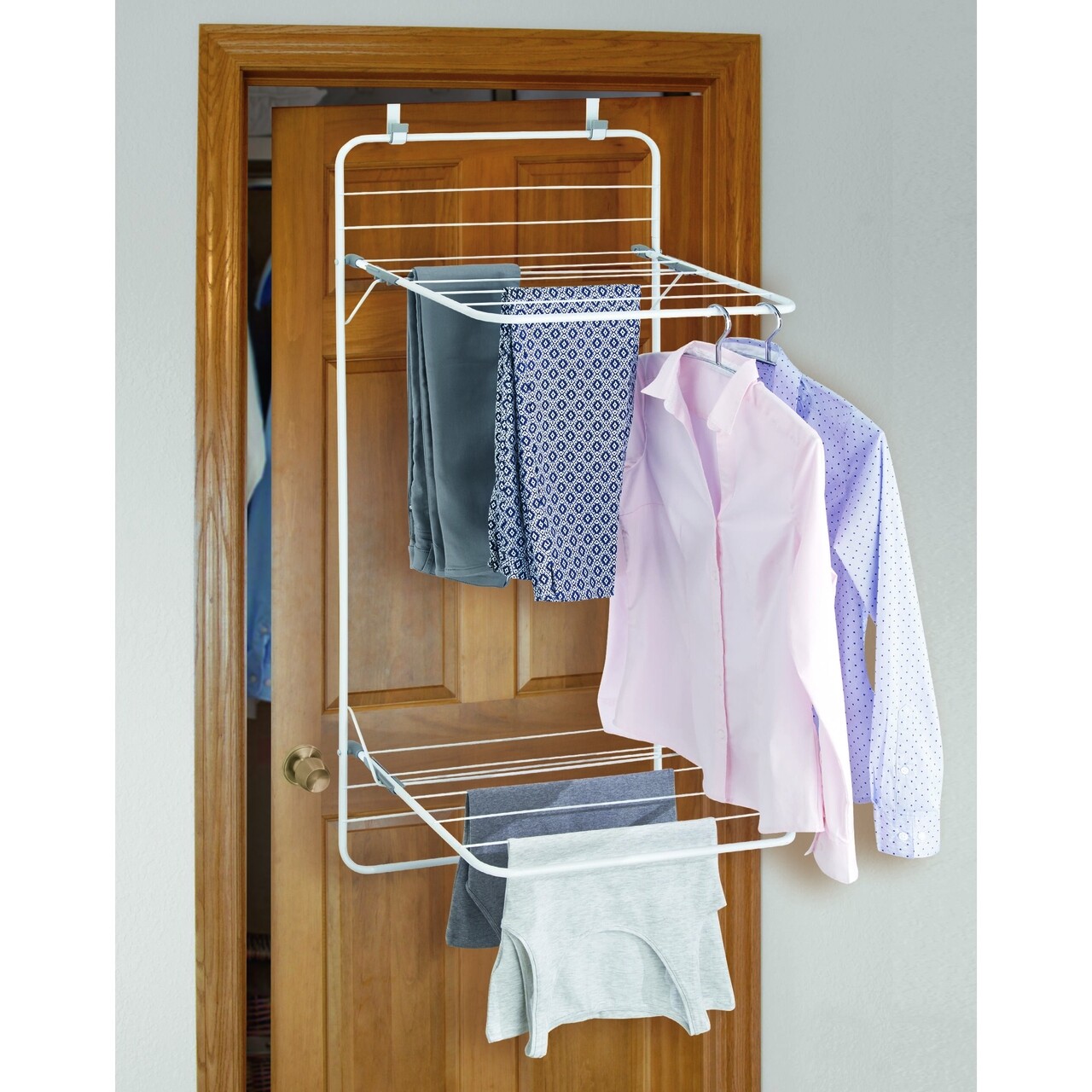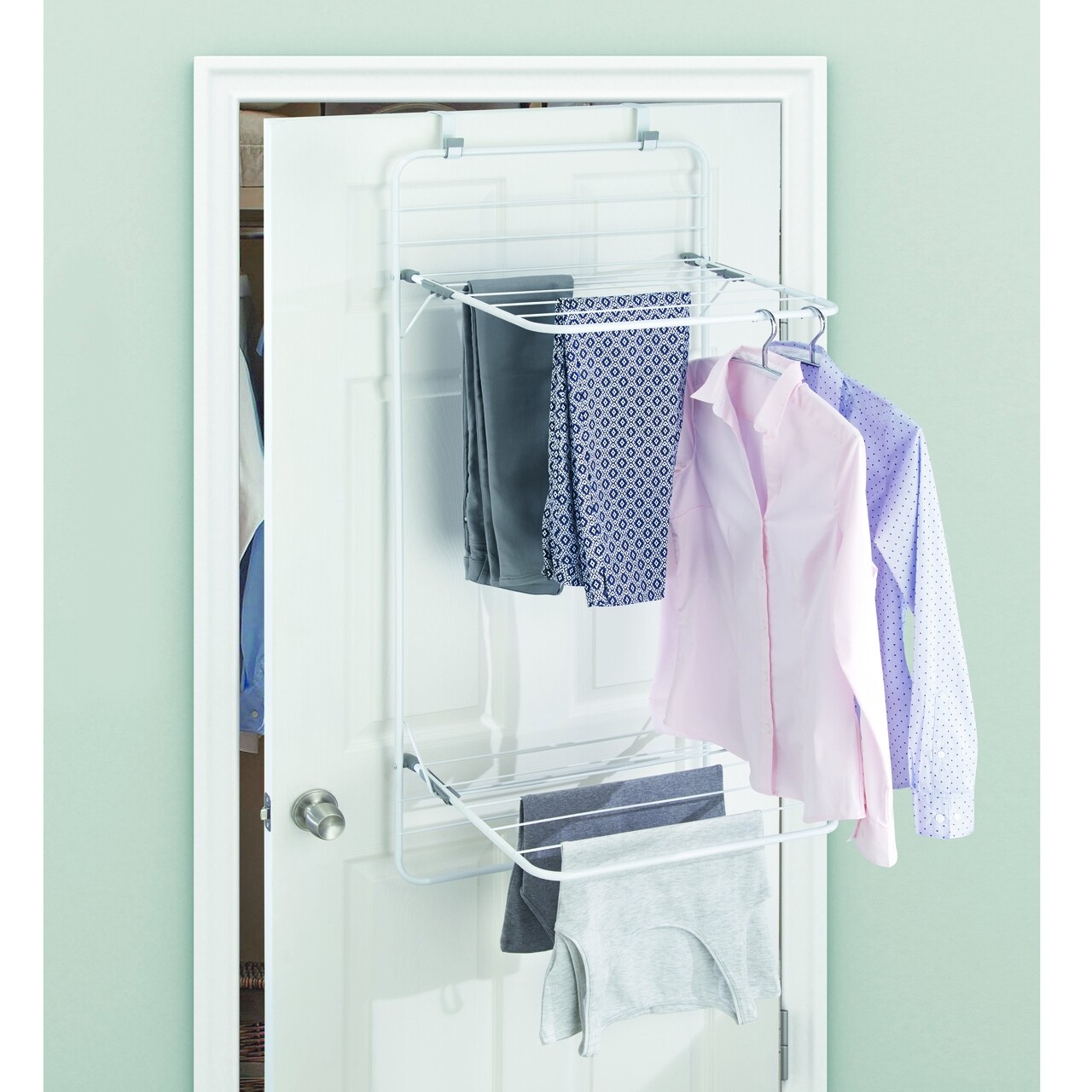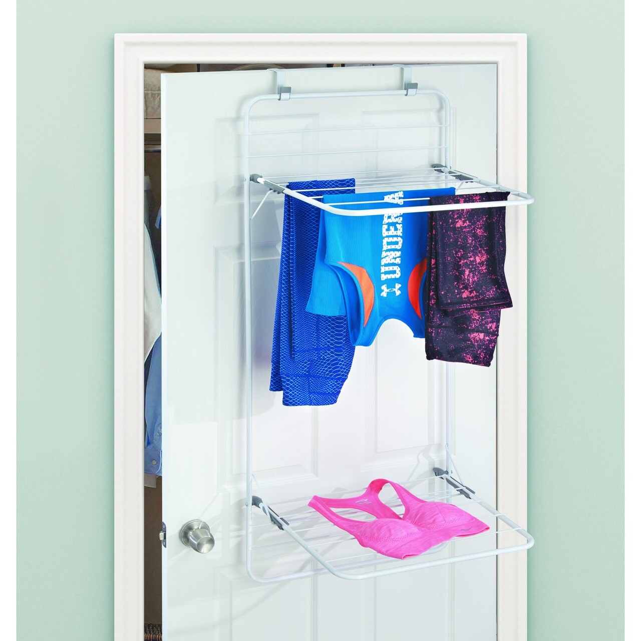 Uscator de haine suspendabil Brezio, iDesign, fixare pe usa, 51x47.5x120.5 cm, otel