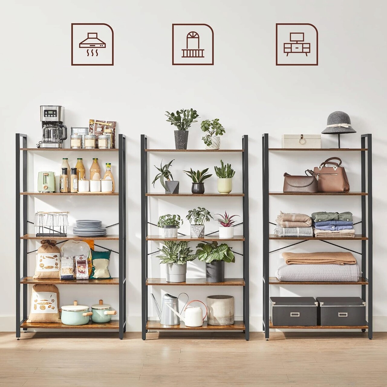 Az 5 nyitott polccal ez a Vasagle könyvespolc a nappaliban, hálószobában, fürdőszobában vagy előszobában mutathatja be kedvenc könyveit, dekorációit és növényeit; Ön dönti el, hogy melyik helyiségben helyezi el.