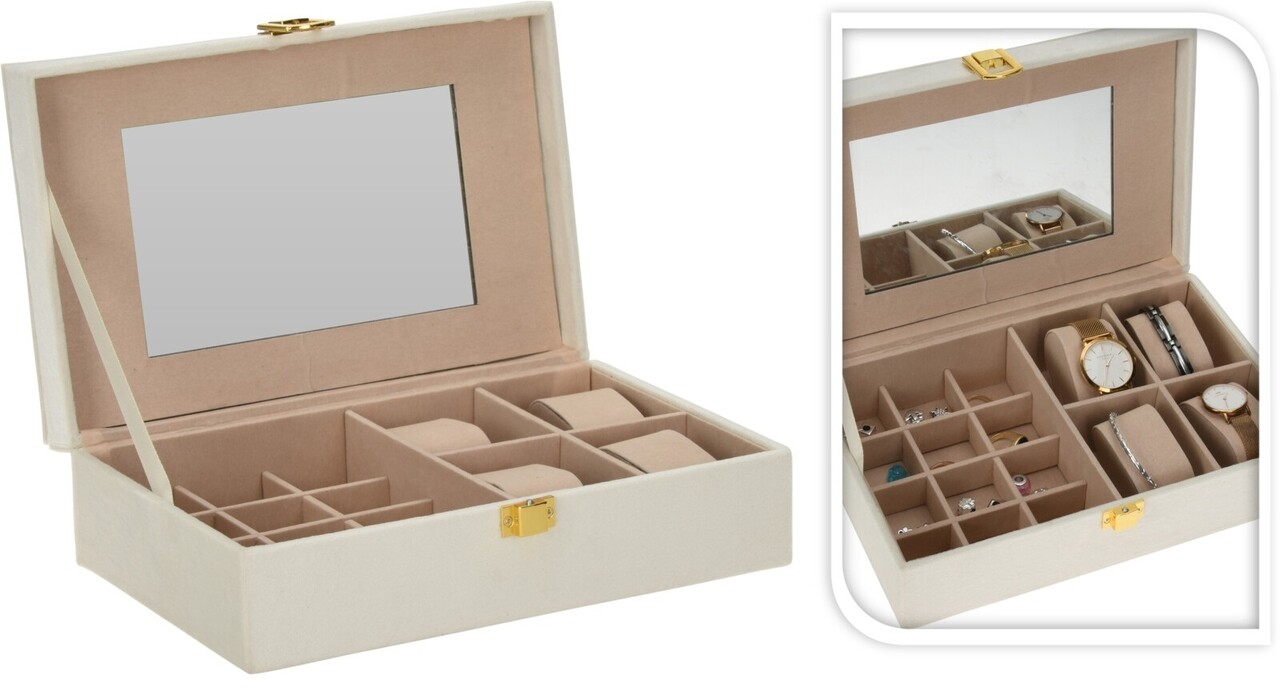 Velvet Ékszertartó tükörrel, 25x16x7 cm, fa, fehér
