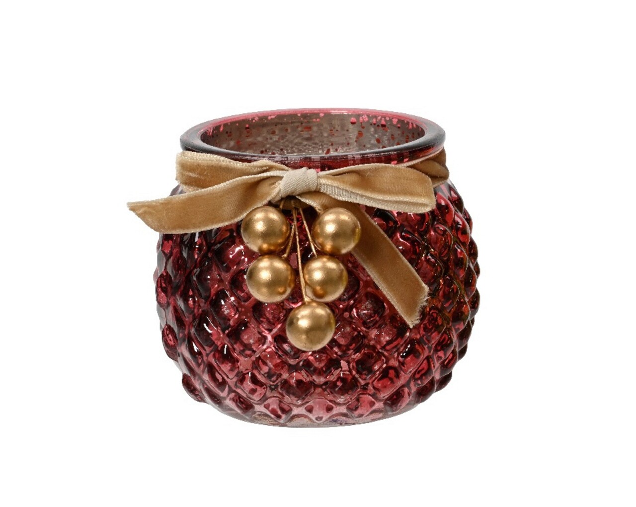 Velvet ribbon and berry Gyertyatartó, Decoris, 8x7 cm, üveg, piros