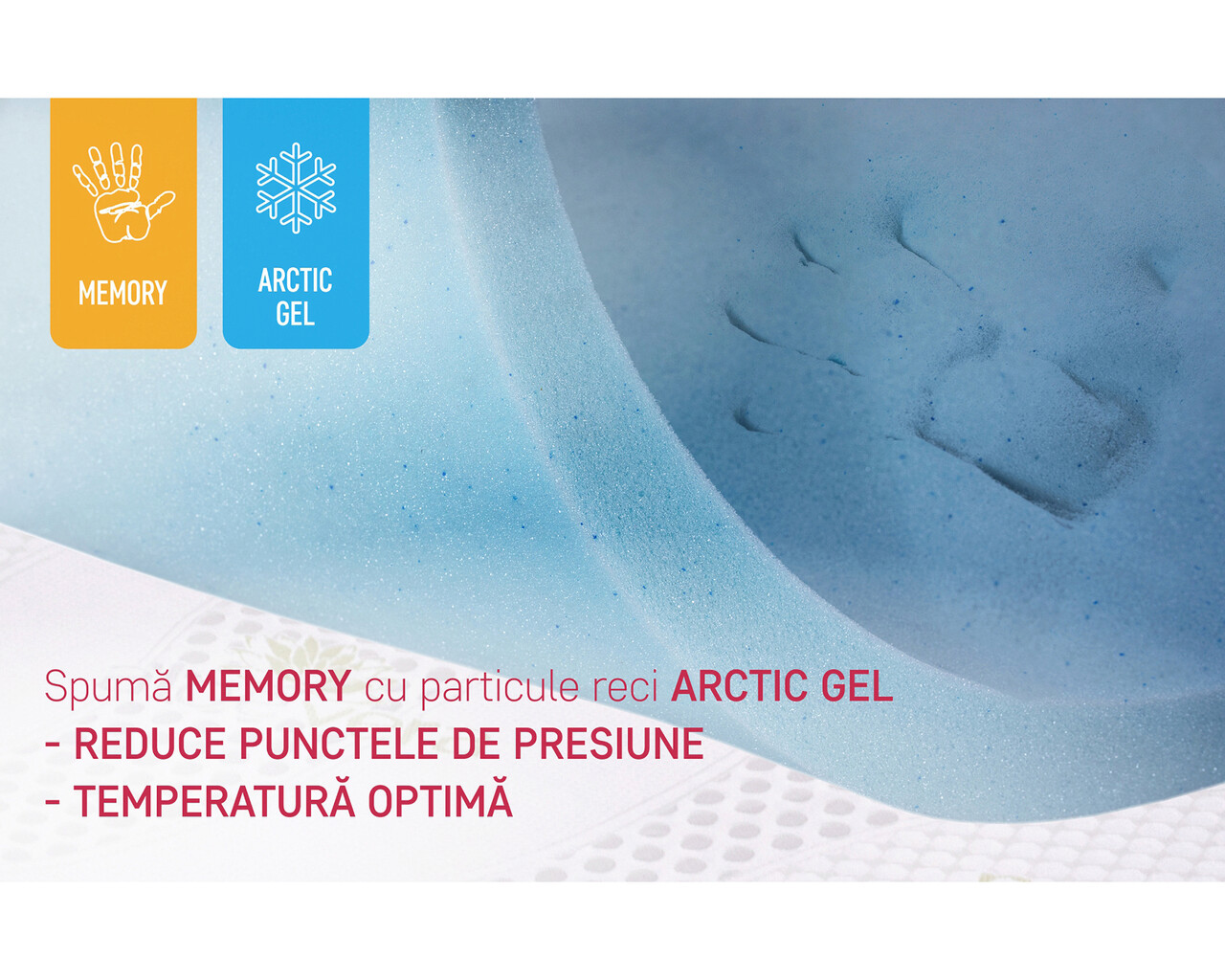 A topper szerkezete két réteg poliuretán habból áll: egy réteg Green Form HD® nyitott cellás rugalmas habból és egy réteg Green Therm Memory habból, hideg Arctic Gel® részecskékkel, amelyek megakadályozzák a túlmelegedést alvás közben, és a test felett mozognak, kiküszöbölve az alvás közbeni nyomáspontokat, hogy ellazítsák az izmokat és biztosítsák a megfelelő vérkeringést.