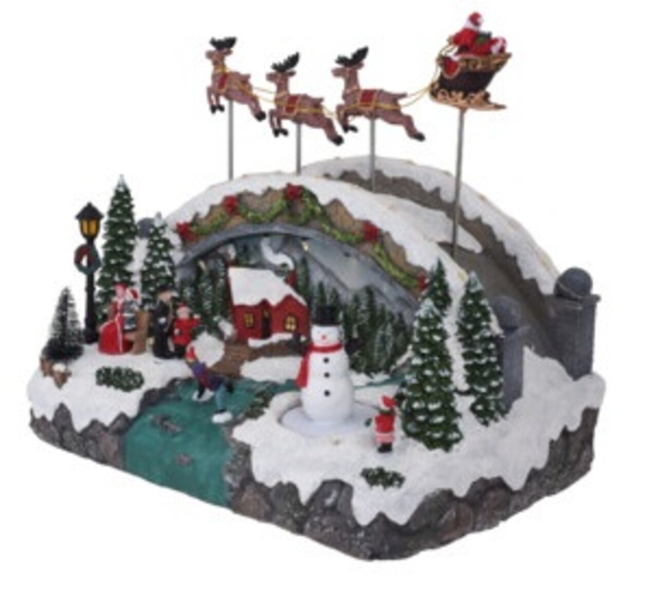 Village with Snowman Fénydekoráció, 33.5x22.5x27.5 cm, poliszton, színes
