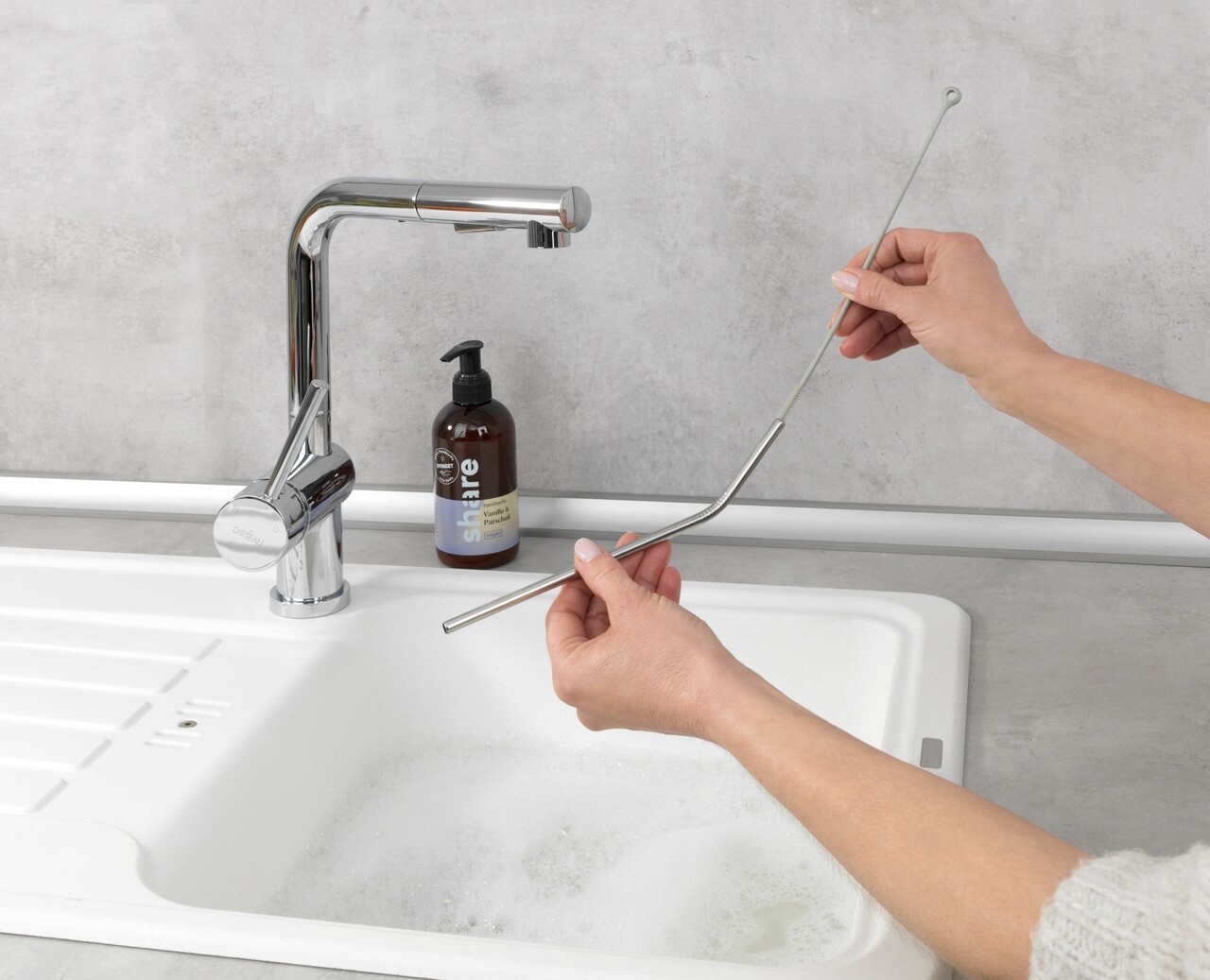 Wenko 2 db Szívószál tisztító, Triko, 0.5 x 26 x 0.5 cm, szilikon, szürke