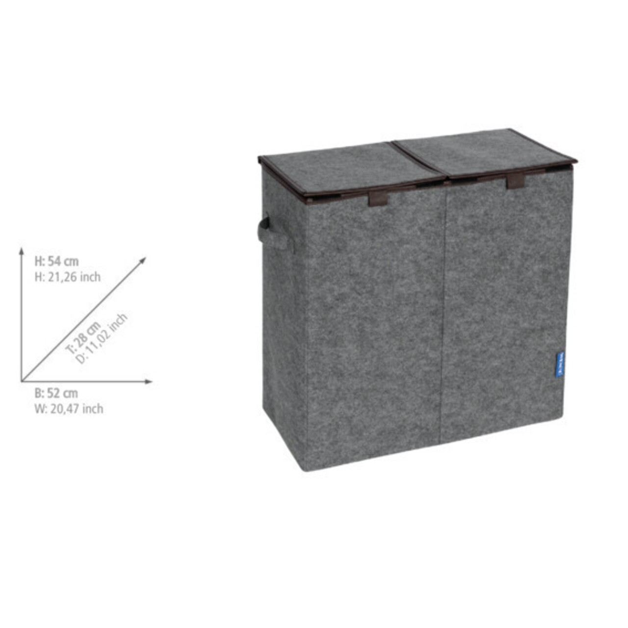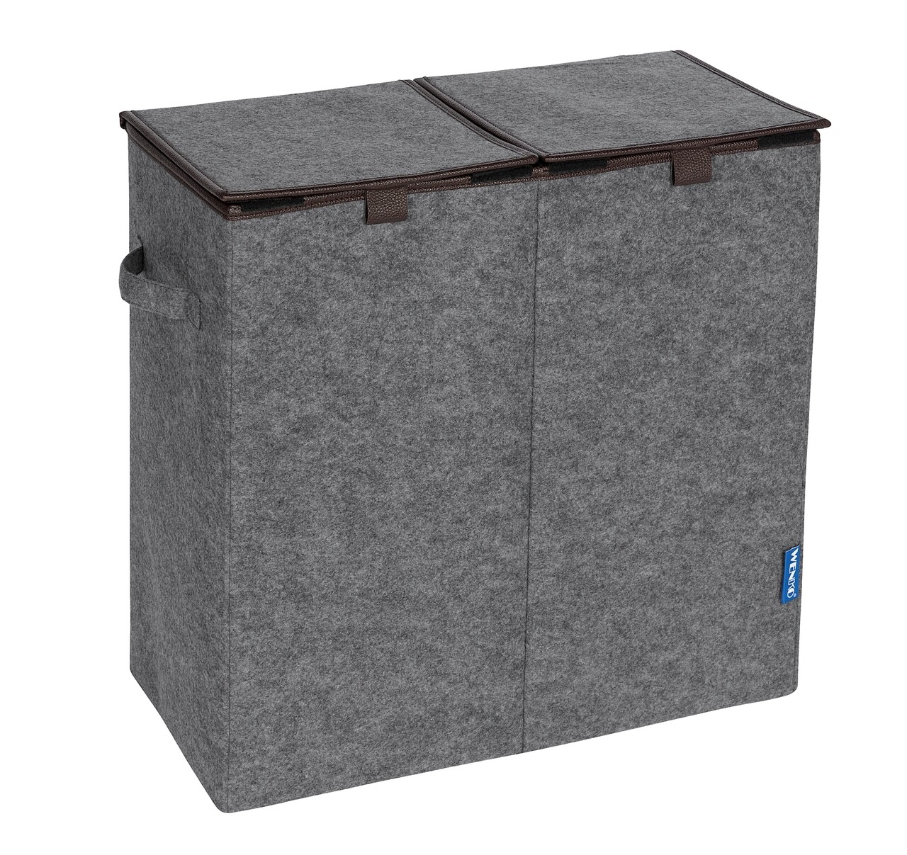Wenko, Filc Duo Szennyeskosár, 2 rekeszes, 82 L, poliészter / polipropilén, szürke / barna