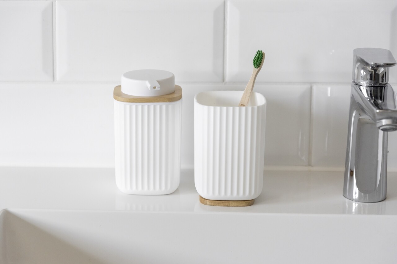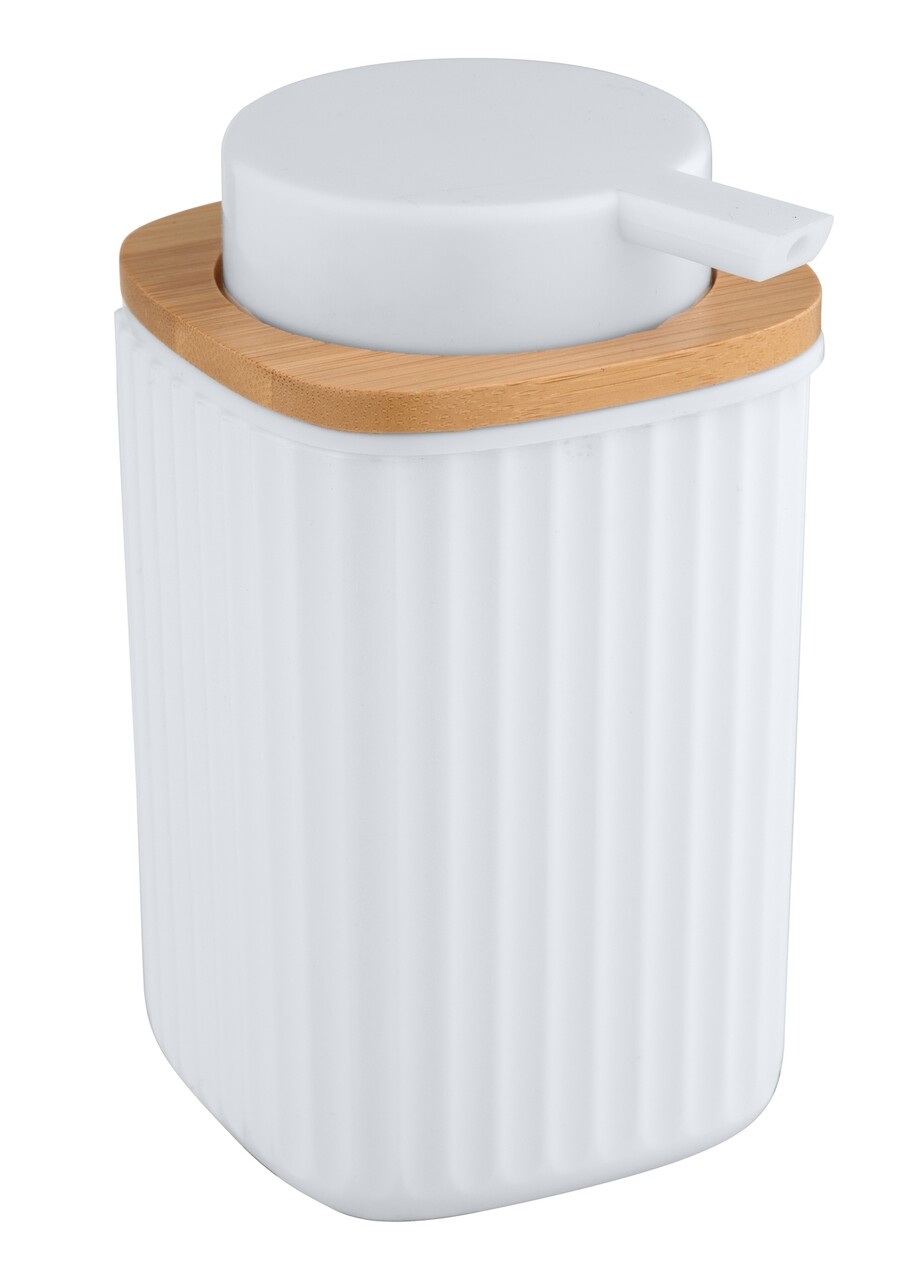 Wenko Szappanadagoló, Rotello, 250 ml, műanyag/bambusz, fehér/barna