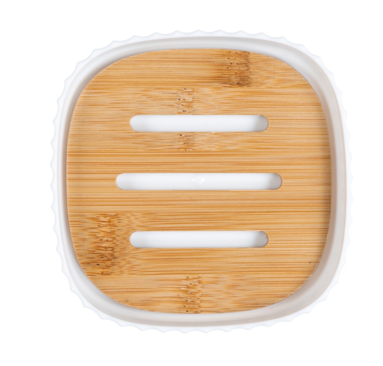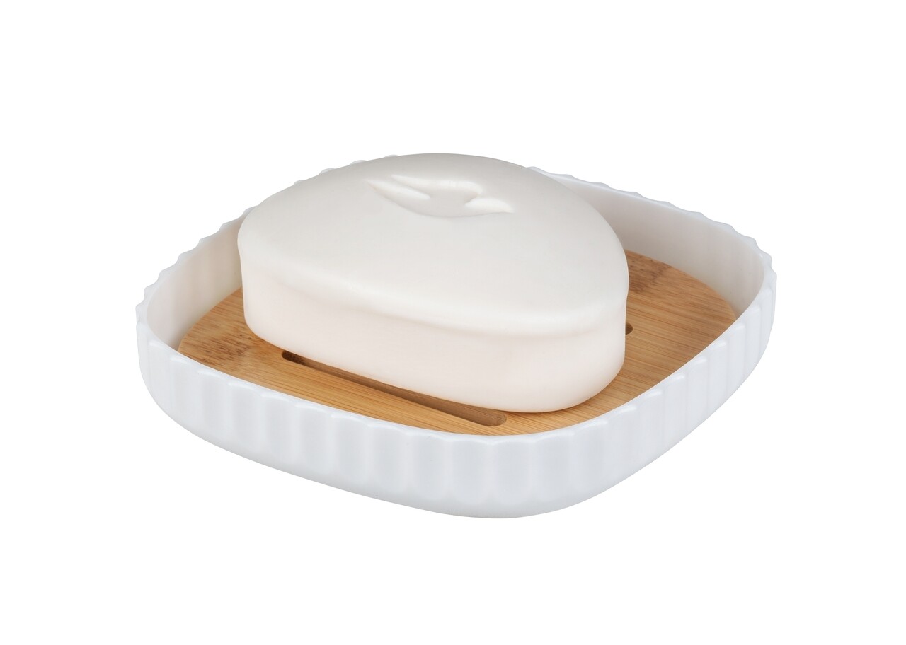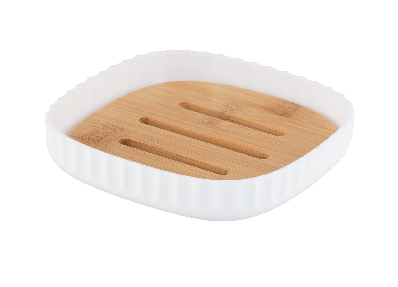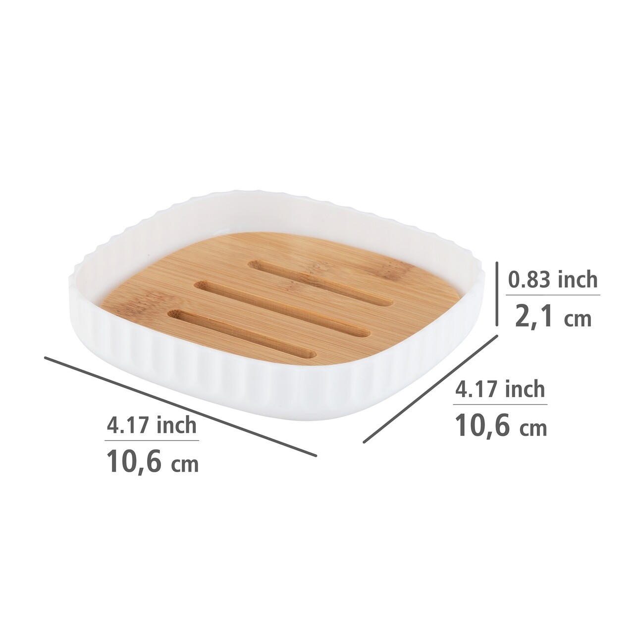 Wenko Szappantartó, Rotello, 10.5 x 2 x 10.5 cm, műanyag/bambusz, fehér/barna