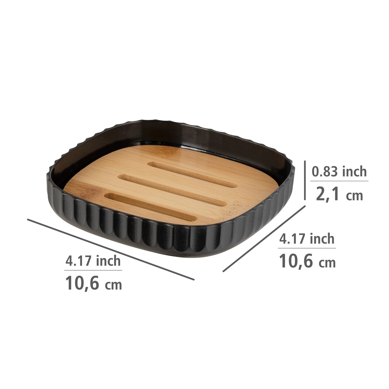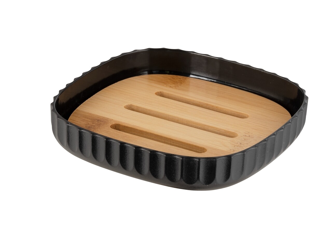 Wenko Szappantartó, Rotello, 10.5 x 2 x 10.5 cm, műanyag/bambusz, fekete/barna