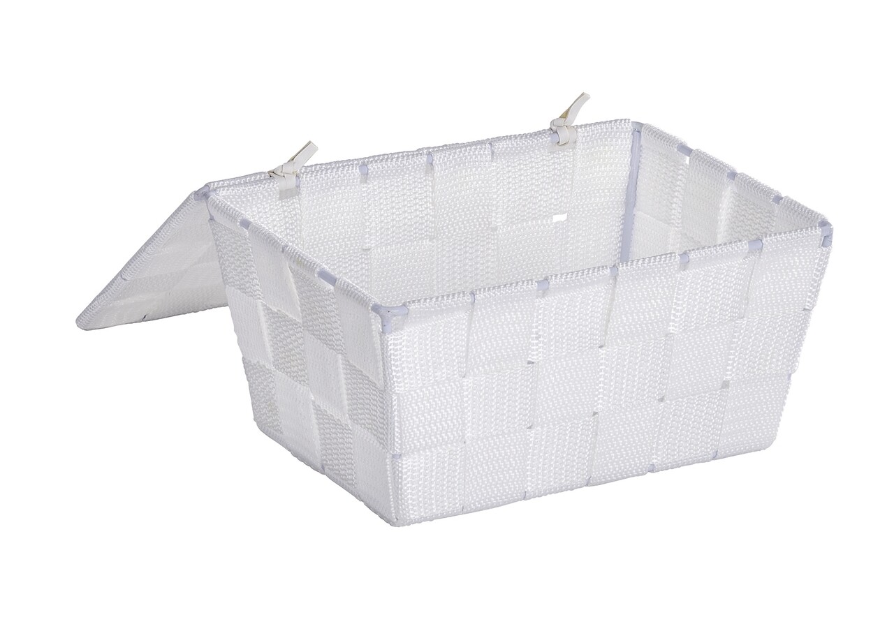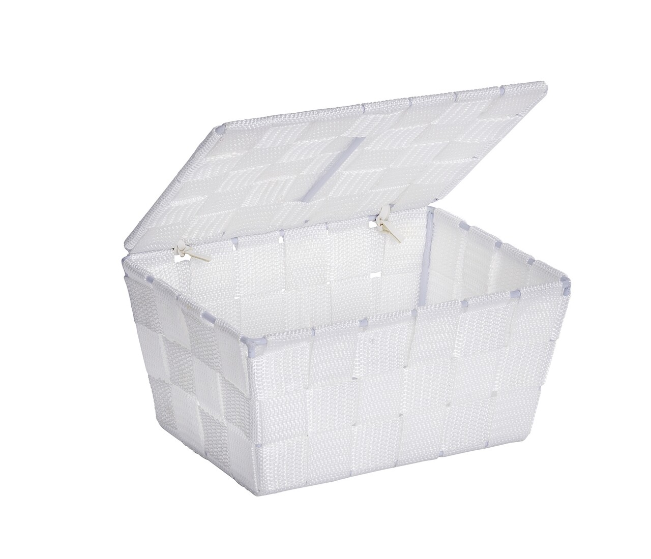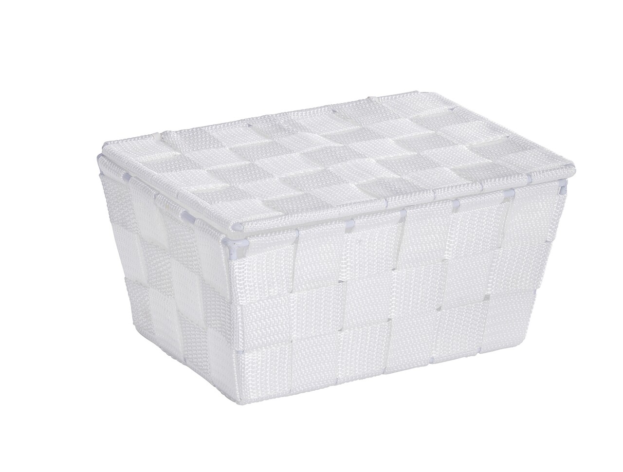 Wenko Tárolókosár fedővel, Adria, 19 x 10 x 14 cm, polipropilén, fehér