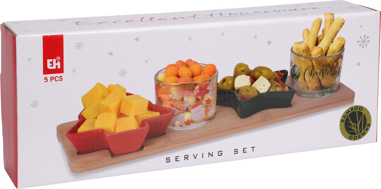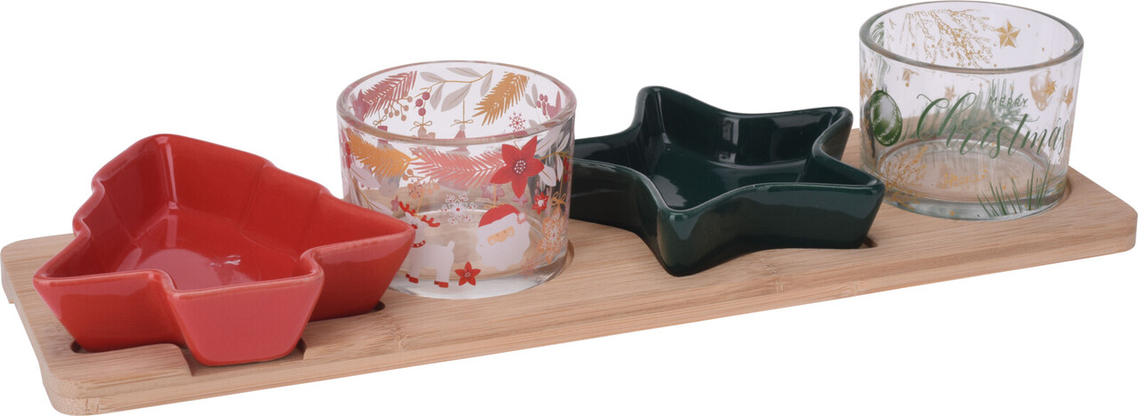 Xmas Szervírozó szett harapnivalóknak, 5 darabos, porcelán/üveg