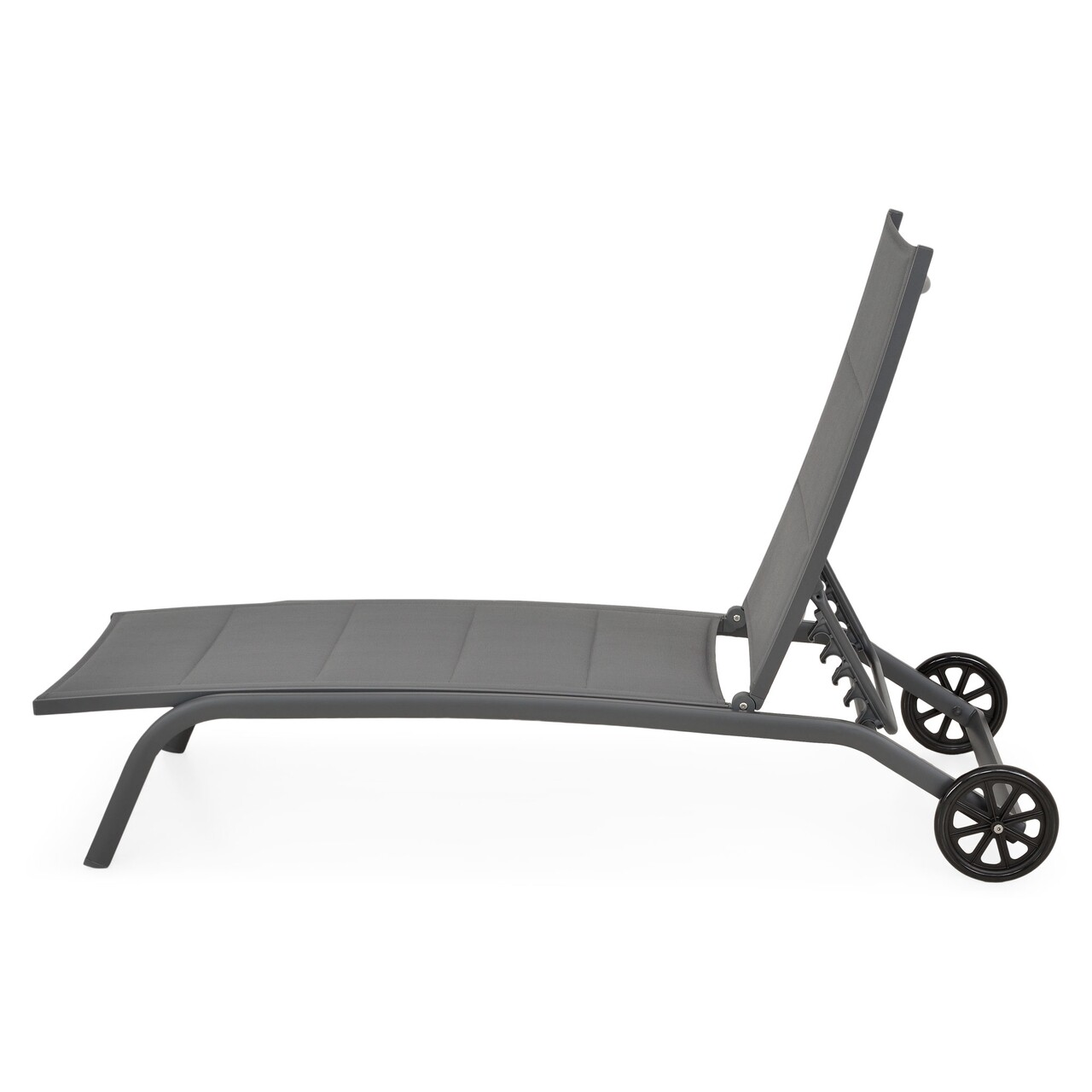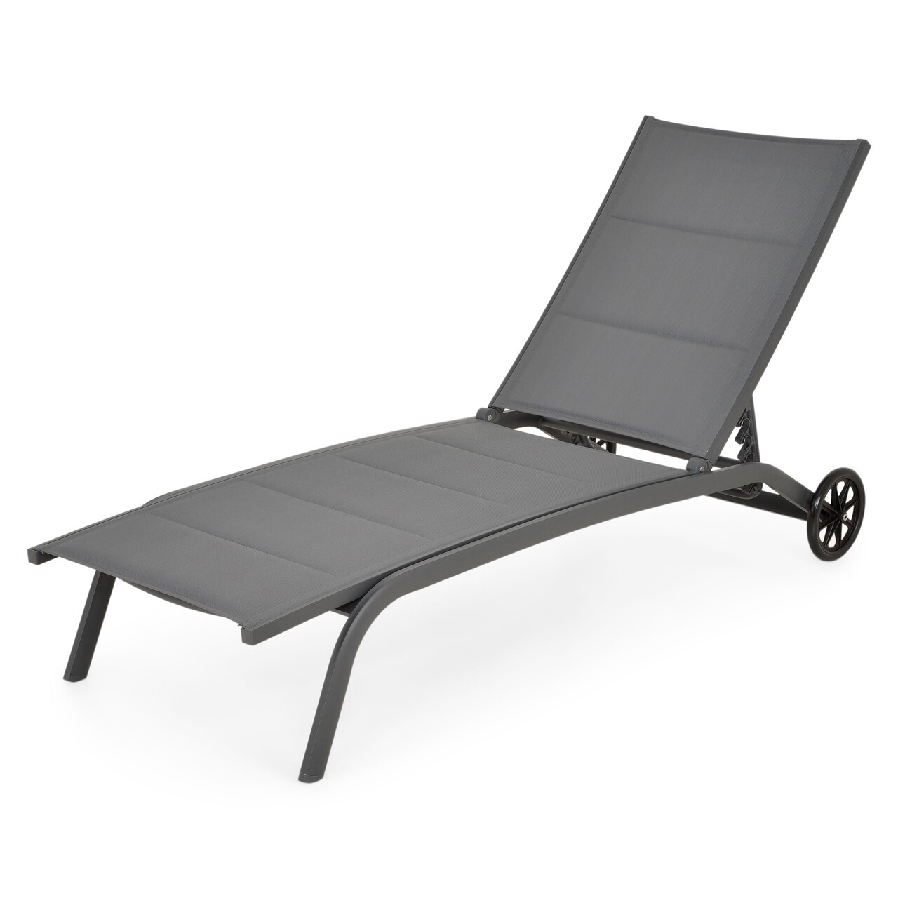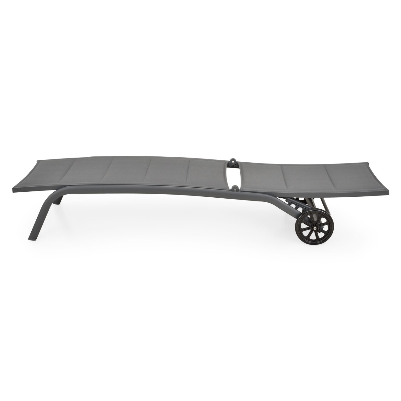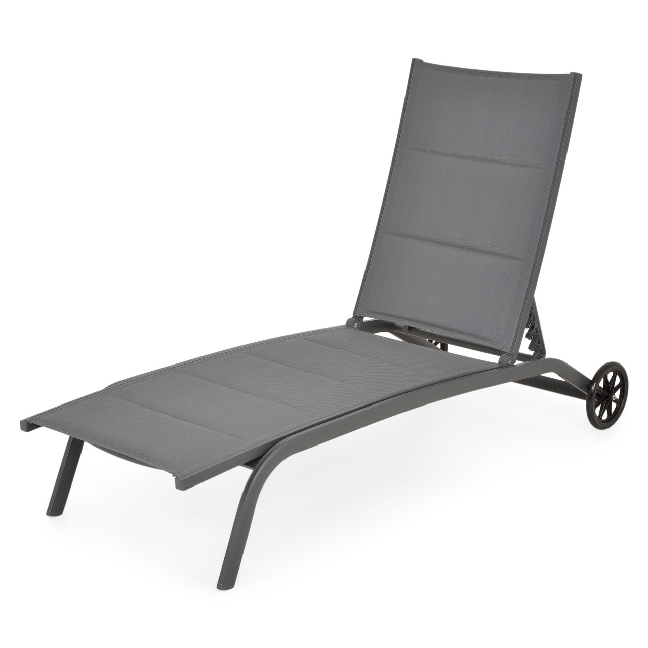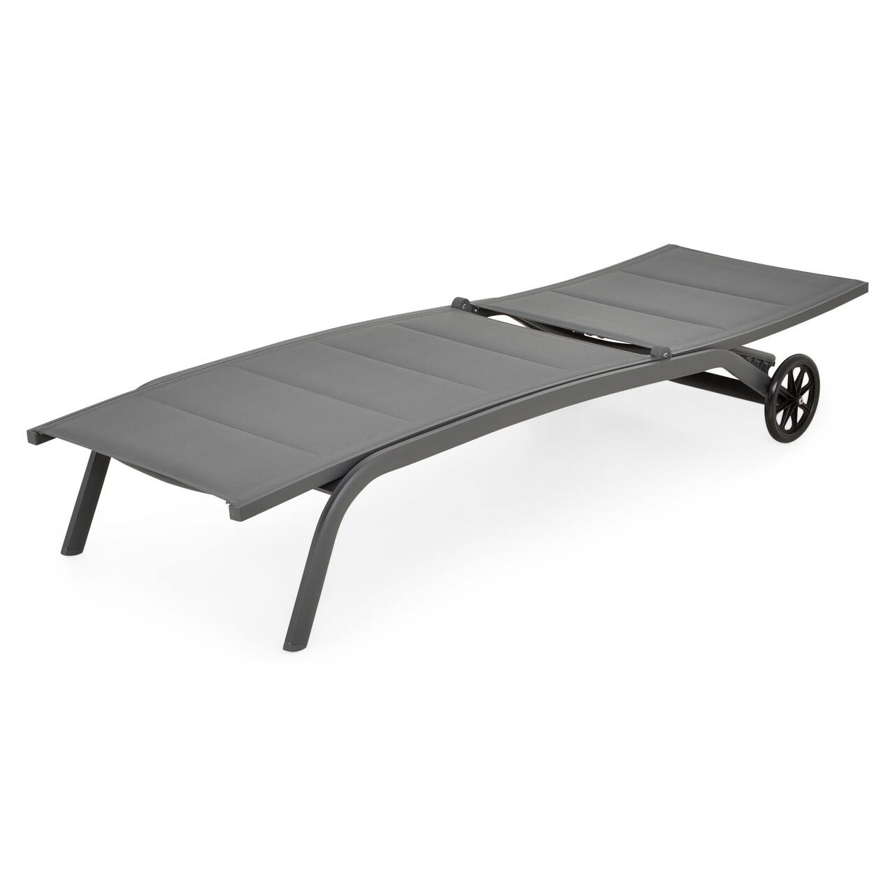 Elektrosztatikusan festett alumíniumszerkezetből készült. Az ülés és a háttámla UV-védett dupla textilből készült, középen szilikongyapjú réteggel a további kényelem érdekében. Kerekekkel felszerelve. Állítható háttámla.