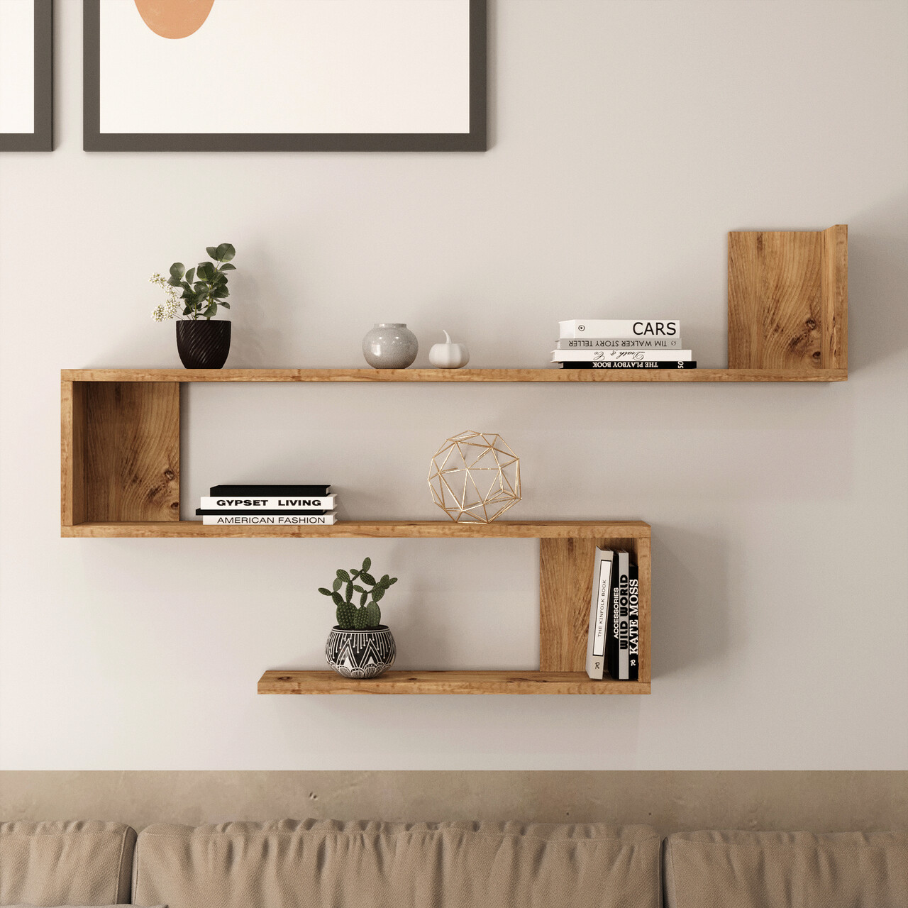Yurudesign Fali polc, 120x145x71.4 cm, PAL, természetes