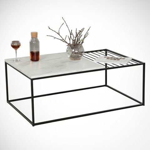 Zinus Marmo Dohányzóasztal, Comforty, 95x55x43 cm, fehér/fekete