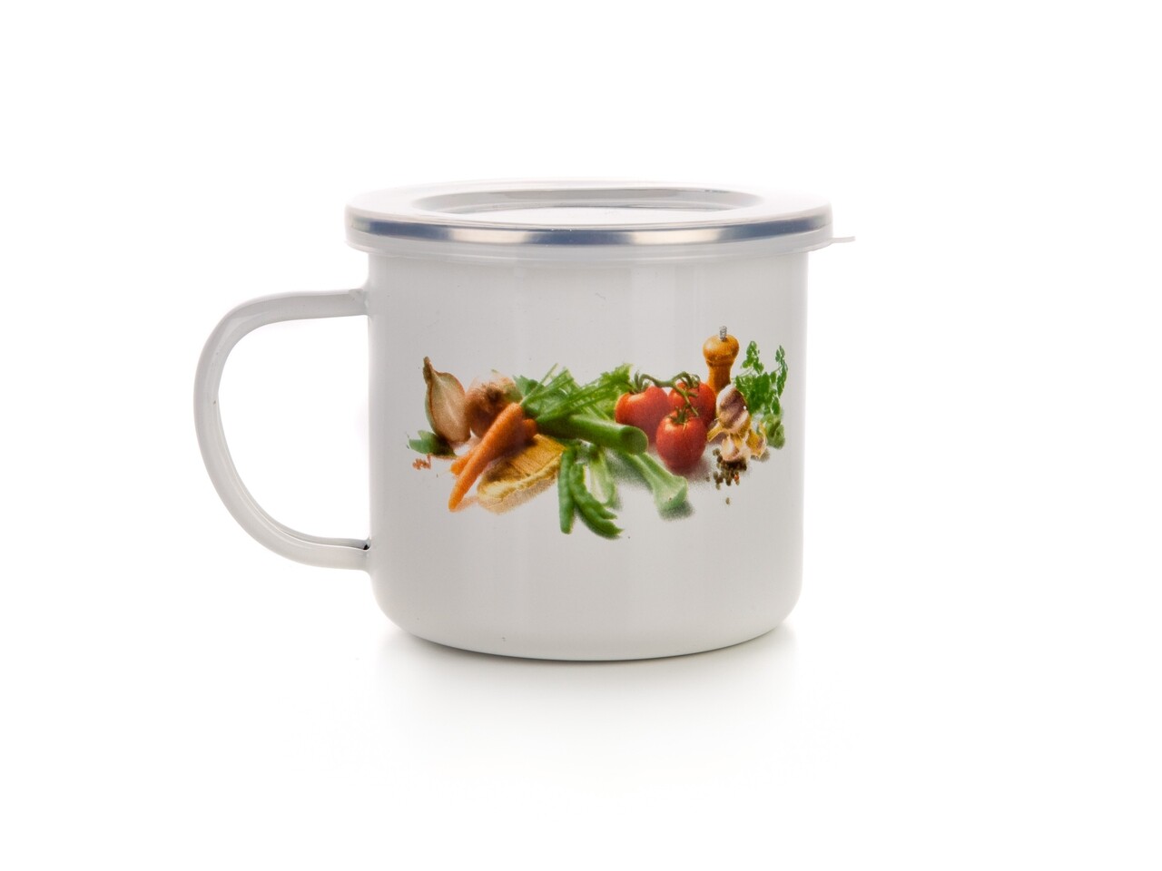 Zománcozott pohár zöldséges fedéllel, bankett, 500 ml